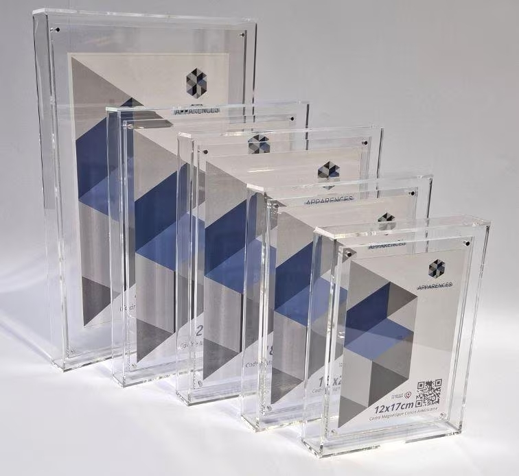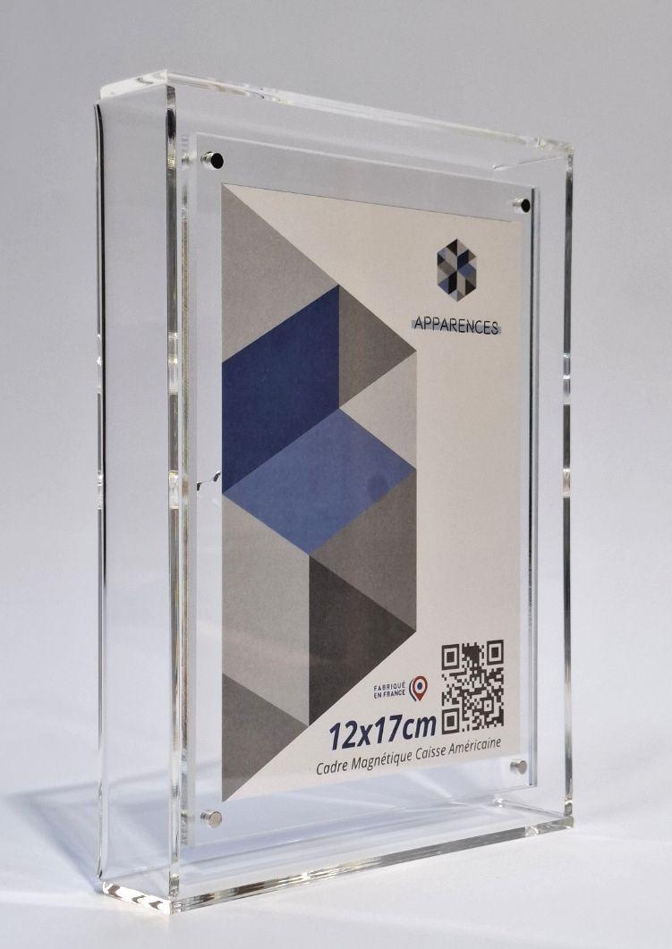 Cadre « caisse américaine » en plexiglass transparent, conçu pour la mise en valeur élégante de photographies et tirages.