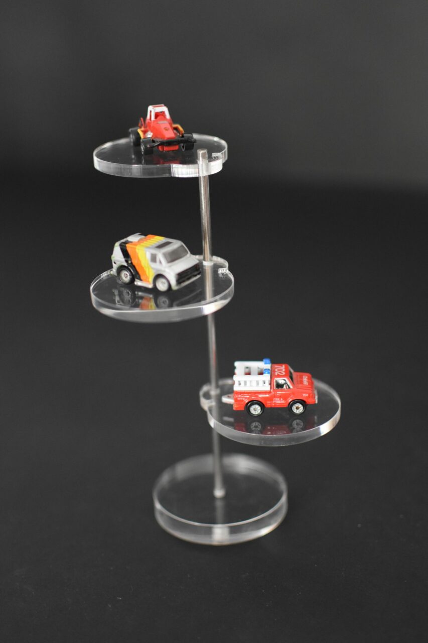 Découvrez notre présentoir en plexiglas sophistiqué doté d’un plateau rond réglable et d’une élégante tige en inox. Ce présentoir allie style et fonctionnalité pour mettre en valeur vos produits de manière unique et captivante.